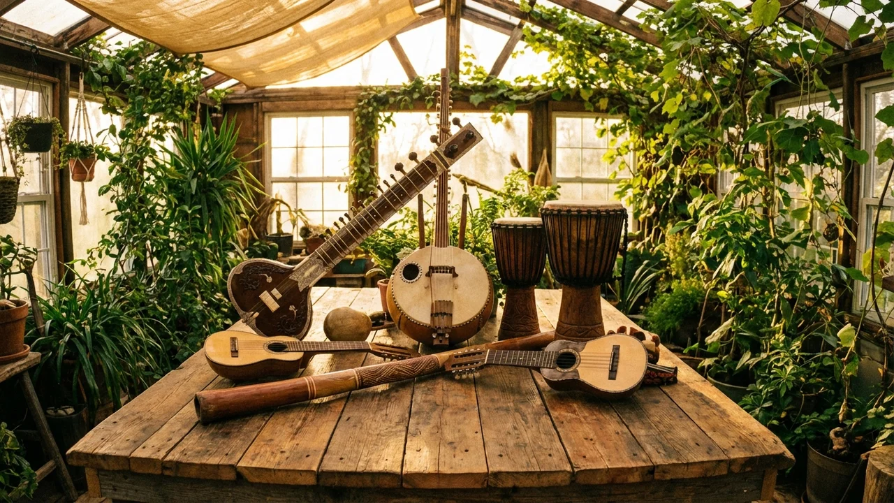 Oferujemy ręcznie wykonane instrumenty z każdego kontynentu — afrykańskie djembe i kalimby, azjatyckie misy tybetańskie i misy kryształowe, europejskie handpany i okaryny, amerykańskie tongue drumy oraz bliskowschodnie harpiki. Każdy instrument pochodzi ze zrównoważonych źródeł i jest wykonany ręcznie przez rzemieślników.