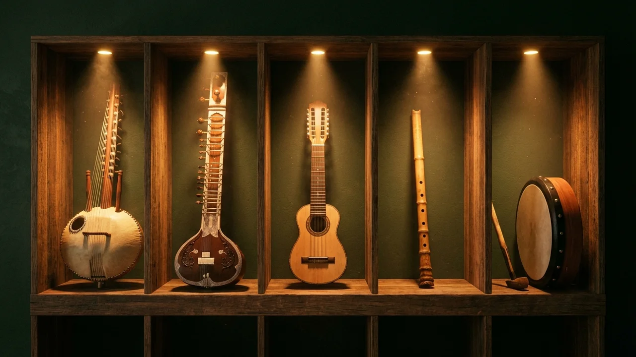 Oferujemy ręcznie wykonane instrumenty z każdego kontynentu — afrykańskie djembe i kalimby, azjatyckie misy tybetańskie i misy kryształowe, europejskie handpany i okaryny, amerykańskie tongue drumy oraz bliskowschodnie harpiki. Każdy instrument pochodzi ze zrównoważonych źródeł i jest wykonany ręcznie przez rzemieślników.